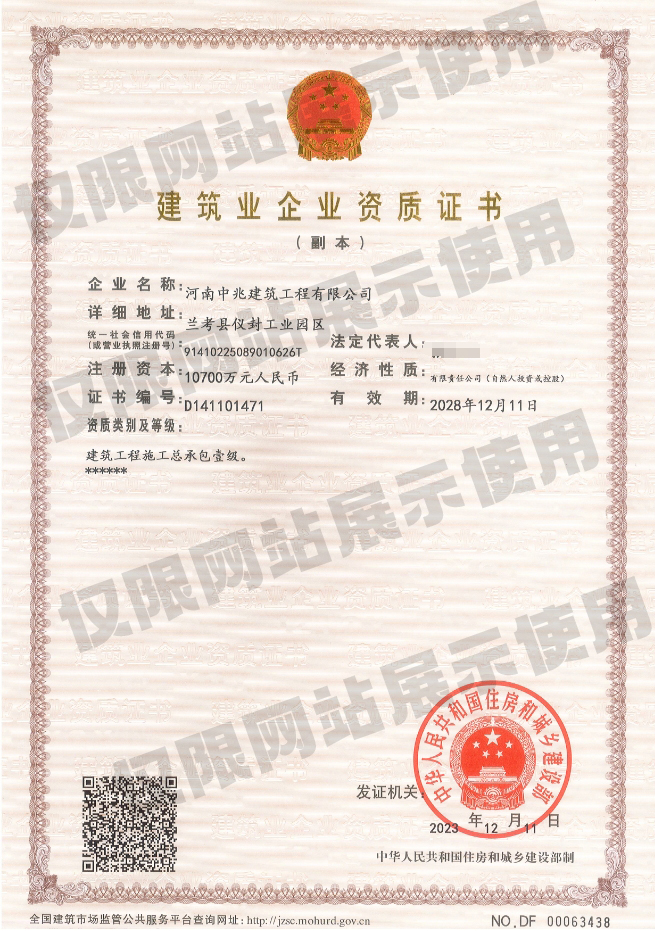 • 河南中兆建筑工程有限公司成立于2013年,公司注冊(cè)資本10700萬(wàn)元,凈資產(chǎn)總額近1.9億元。公司目前具有“建筑工程、市政公用工程、鋼結(jié)構(gòu)工程、建筑機(jī)電安裝工程、建筑裝修裝飾工程、地基與基礎(chǔ)工程、消防設(shè)施工程、壓力管道”等17個(gè)資質(zhì)?,F(xiàn)有從業(yè)人員2150人,具有中高級(jí)各類(lèi)專(zhuān)業(yè)技術(shù)職稱(chēng)管理人員達(dá)120人,壹級(jí)、貳級(jí)建造師約90余人;主要施工設(shè)備300多臺(tái)(套)。通過(guò)了ISO9001質(zhì)量管理體系認(rèn)證、職業(yè)健康安全管理體系認(rèn)證、環(huán)境管理體系認(rèn)證,并多次獲得省級(jí)“AAA”信用企業(yè)、“重合同守信用”、“先進(jìn)建筑企業(yè)...
